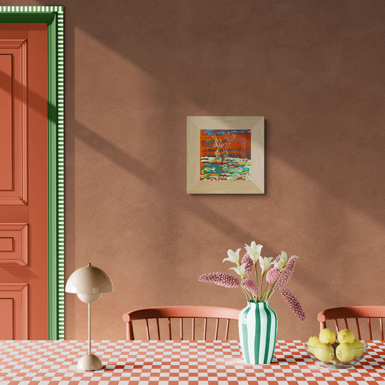 Dancing at River's Edge captures a moment of pure enchantment where water, light, and nature converge in vibrant harmony. This mixed media piece on wood panel brings the river to life through dynamic brushwork that conveys flowing movement and shimmering reflections. Layered colors dance across the composition—greens, blues, and earth tones interweaving like the trees swaying along the banks. The artist's bold approach transforms a riverside meditation into a visual symphony, where every element pulses with energy and dimension. Perfect for those who crave art that moves beyond the static, this intimate 12 x 12 inch work invites you into a world where nature's magic becomes tangible and alive.